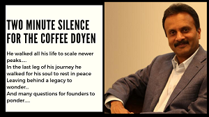 06 August 2019, from the editorial: Indian Ecosystem has lost a stalwart, Veerappa Gangaiah Siddhartha Hegde, the founder of the cafe chain Café Coffee Day. He was a director on various prestigious boards like Mindtree, GTV, Liqwid Krystal, Way2wealth Brokers, Coffee Day Natural Resources, and Way2wealth Securities. This brave heart lost its cool and was found dead on the banks of the NETRAVATI River. RIP VG SIDDHARTHA!