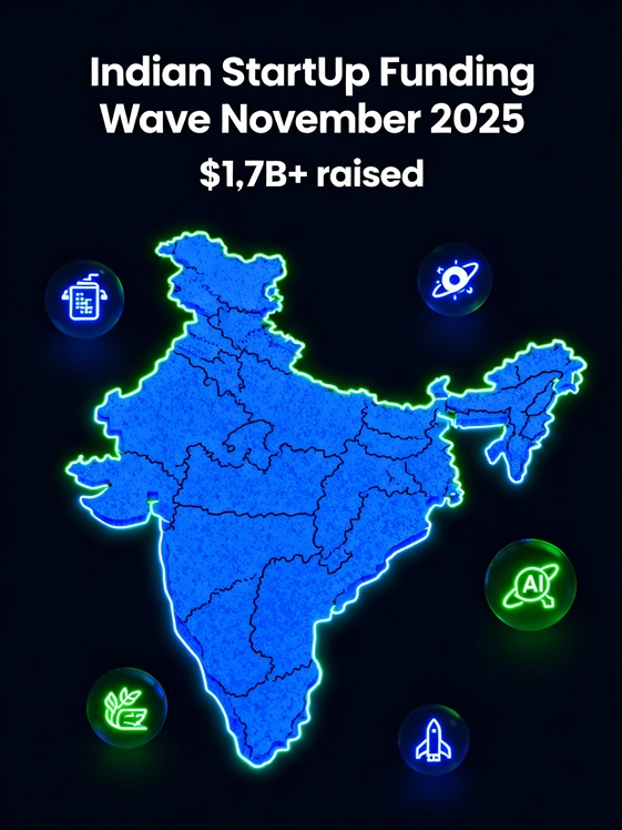 Between November 17 and 22, 24 Indian StartUps across sectors like Fintech, Agritech, AI, Spacetech and Autotech raised over $218 million, marking a clear rebound in deal momentum. By November 28, overall November funding touched about $1.7 billion, more than triple November 2024 levels.