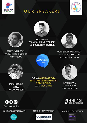 WISSION TALKS in association with AP STATE SKILL DEVELOPMENT CORPORATION (APSSDC) successfully completed the first phase of its StartUp Awareness Yatra. Speakers from various places who were CEO’s of many successful running StartUps engaged the student’s with their experiences.