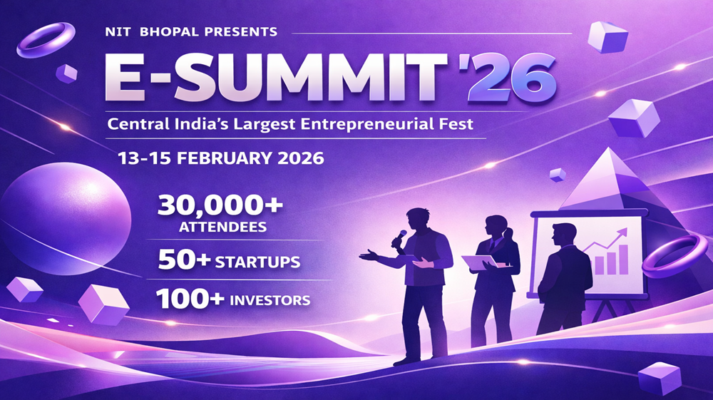 E-Summit’26, hosted by the Entrepreneurship Cell NIT Bhopal, is Central India’s largest entrepreneurial fest, scheduled from 13–15 February 2026 on the MANIT campus.